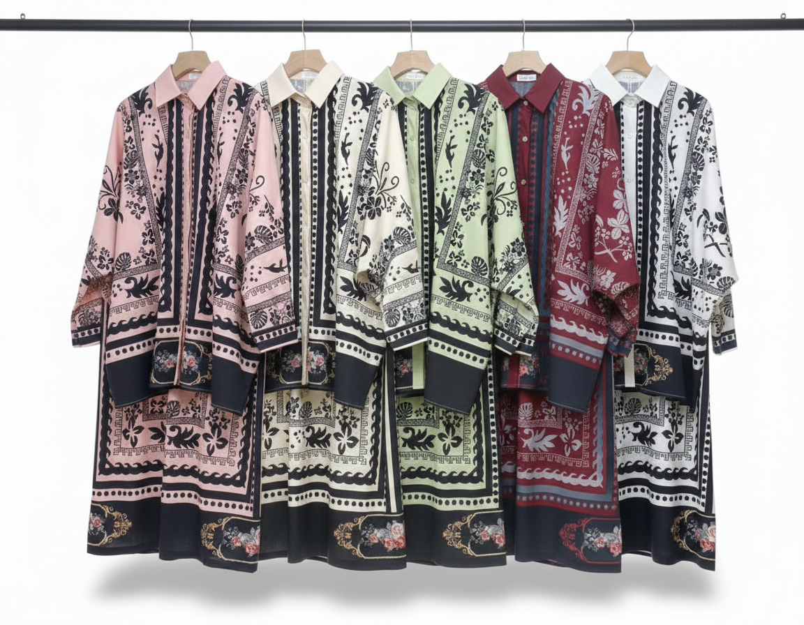 - Material: Smooth, high-quality fabric blend (often silk, crepe, or lawn)